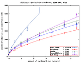 Edge retention comparisons by the author noted just as Wilson described. An early example of such work was performed during reviews of two custom knives, a MEUK and Running Dog Traditional Tanto. The knives were compared for edge retention during slicing wood 4 with the sharpness measured by cutting 1/4" poly rope under 700 grams of tension 5. It was clear that blunting was not linear and followed Wilsons description, however there is to much noise in the data to quantify the exact nature of the curve.