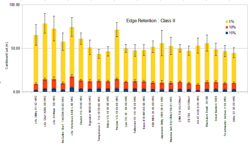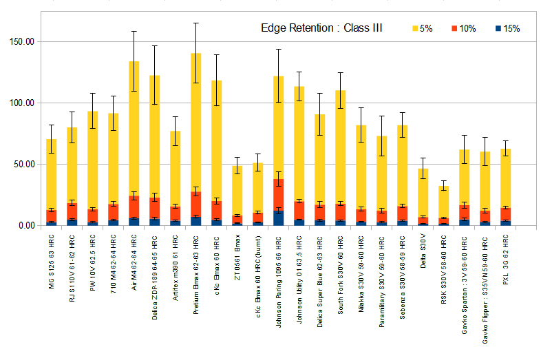 Knife | Steel | Hardness | Sharpness | # runs | 15% | 10% | 5% | pps |