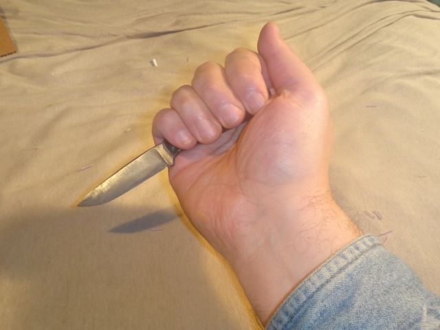 The narrow throat due to the index finger choil also makes such grips very sloppy/open in that region and reduces comfort and security. Again though such smaller knives are in general not intended to be used in such grips with such heavy force normally.